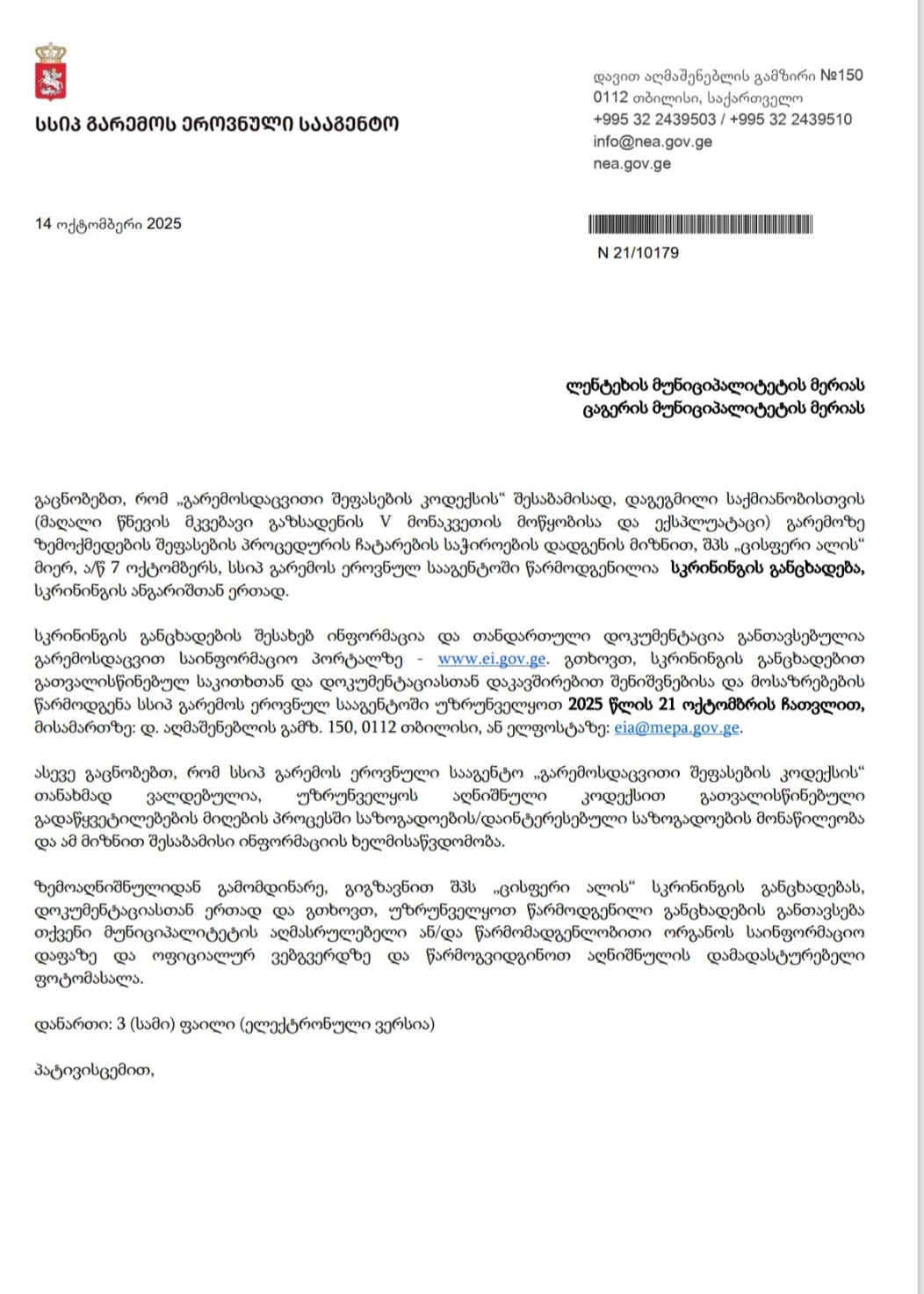 წერილი საკრებულოს თავმჯდომარეს